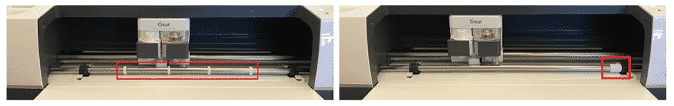 Attention à ne jamais recouvrir le motif avec le ruban, ni à le placer sous les rouleaux noirs du tapis. Les roues blanches doivent être décalées pour éviter de laisser des traces sur le film.