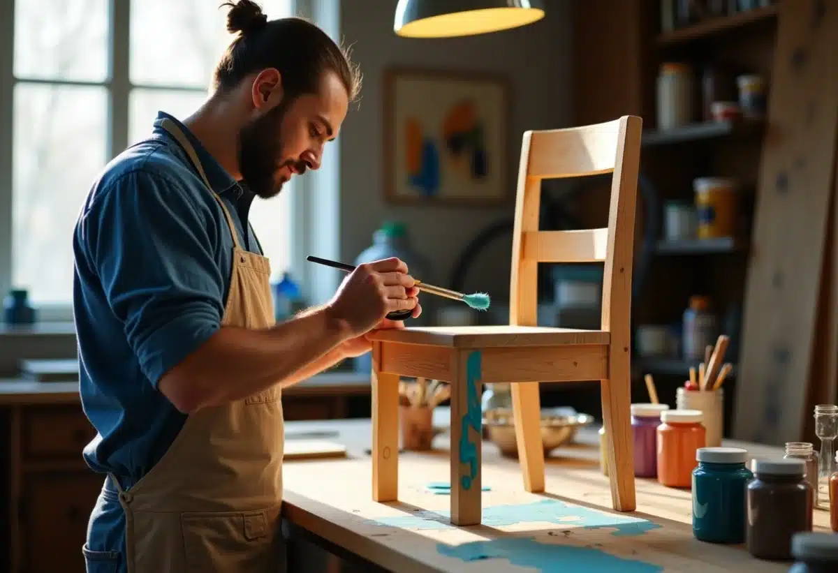 Les commodes et bureaux peuvent aussi bénéficier de ce relooking créatif. Optez pour des motifs géométriques ou des lignes épurées pour un rendu moderne. Une fois la peinture acrylique appliquée, terminez par une couche de vernis acrylique pour une protection optimale contre les rayures et l’usure quotidienne.